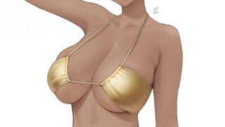 Tomboy in gold bikini
