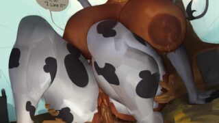 1 A farmer should be careful not to hurt themselves when conducting inspections on their dairy cows with especially pronounced wobblefat fuckweights | [Artist: Saigalisk] (Cloud Meadow)